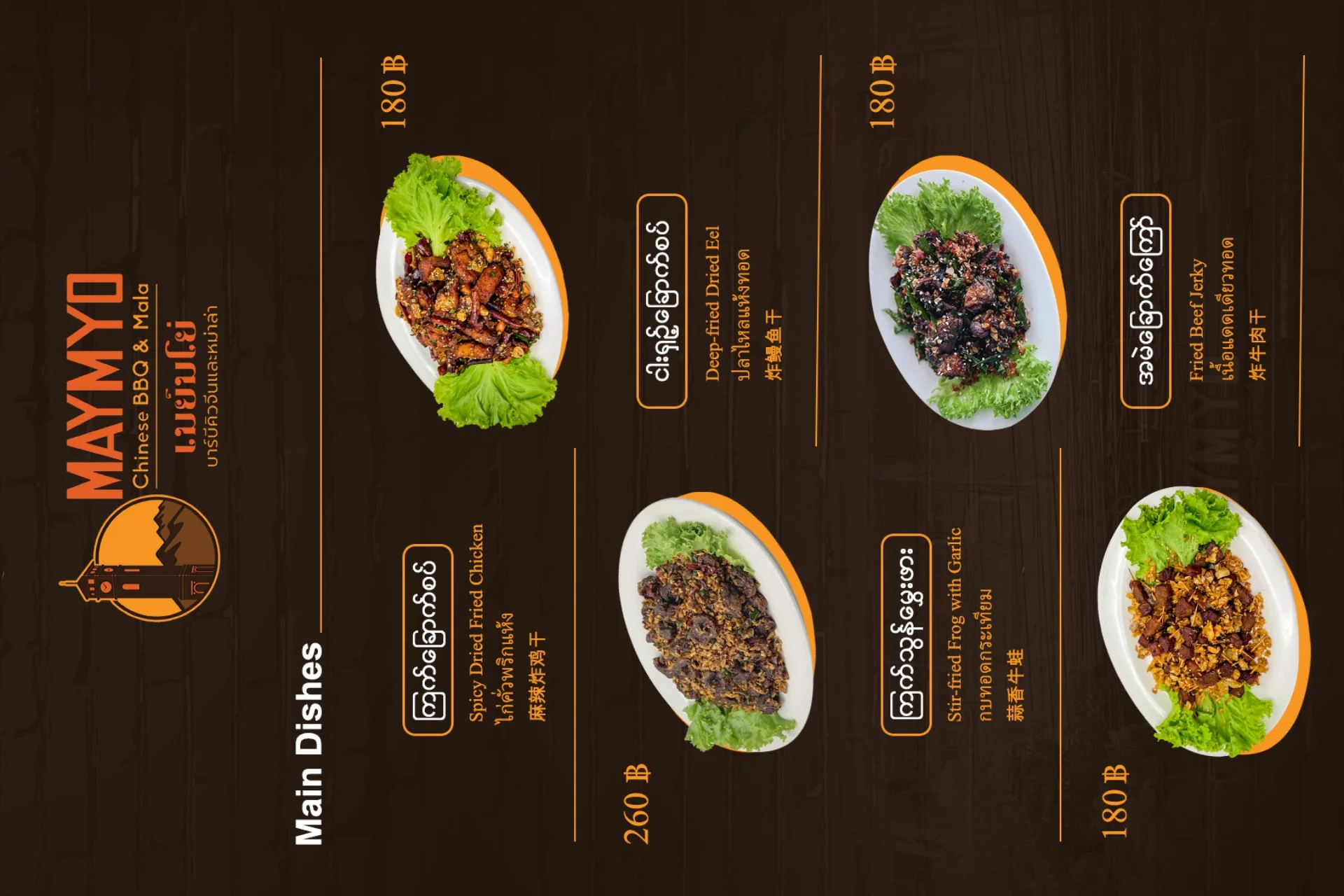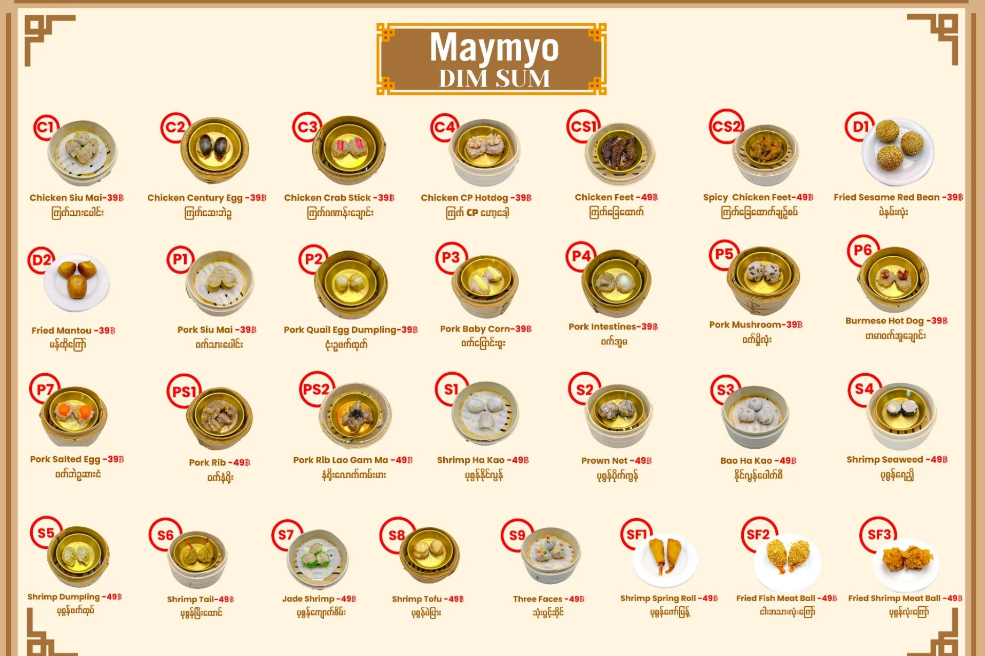 <p>Maymyo BBQ and Dim Sum ရှိ Dim Sum Menu များနှင့် ရှမ်းခေါက်ဆွဲများကို MyanLife Coupon ဖြင့် 15% Discount ရယူနိုင်ပါသည်။</p>