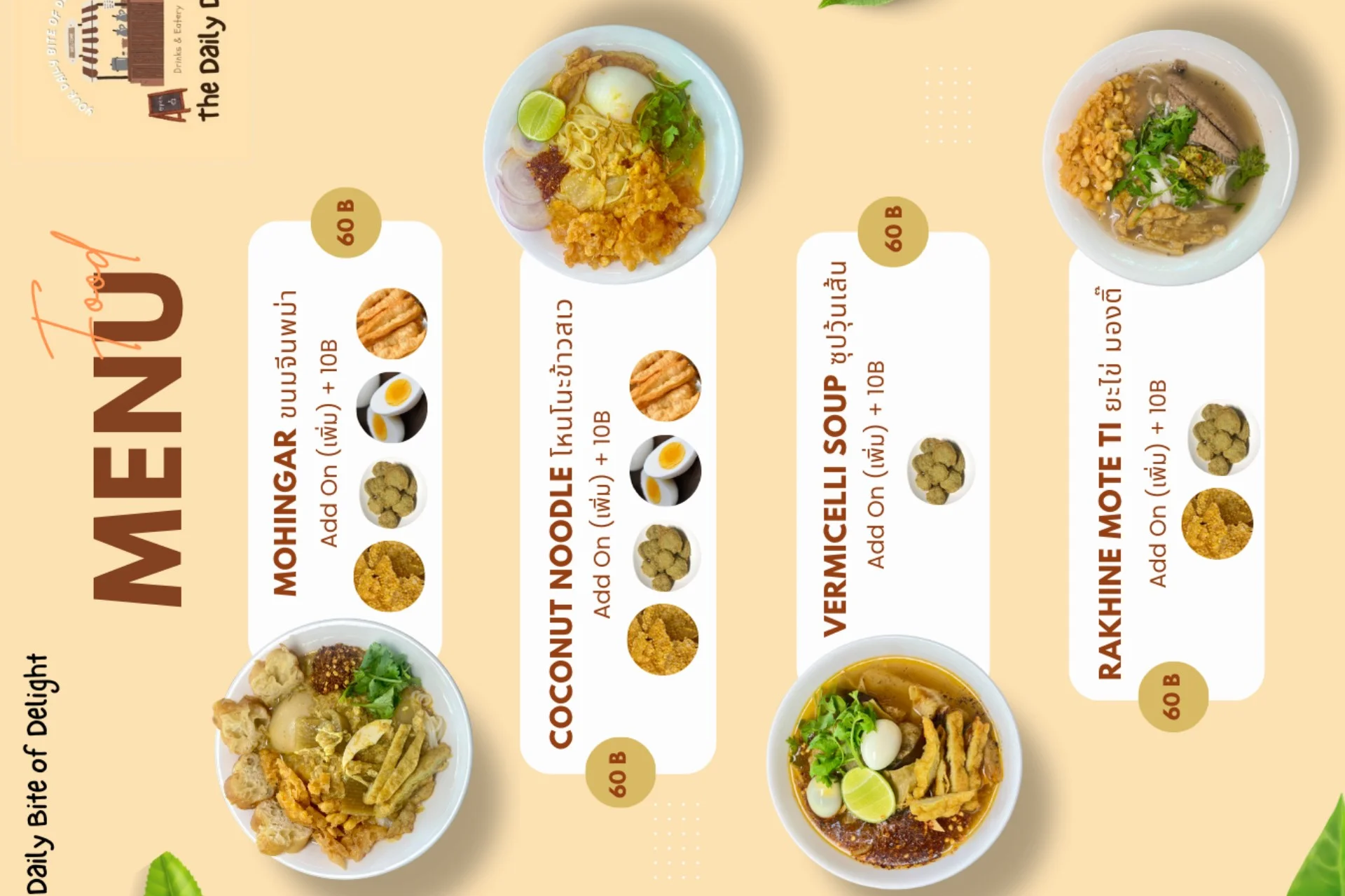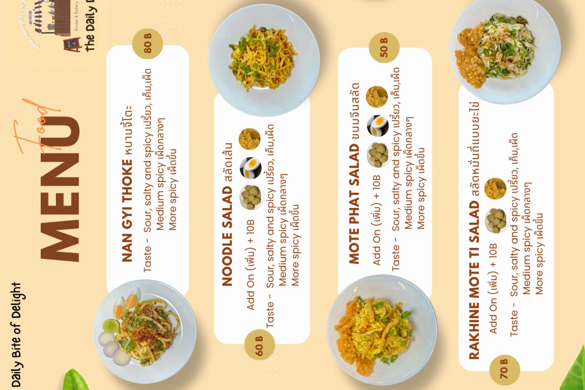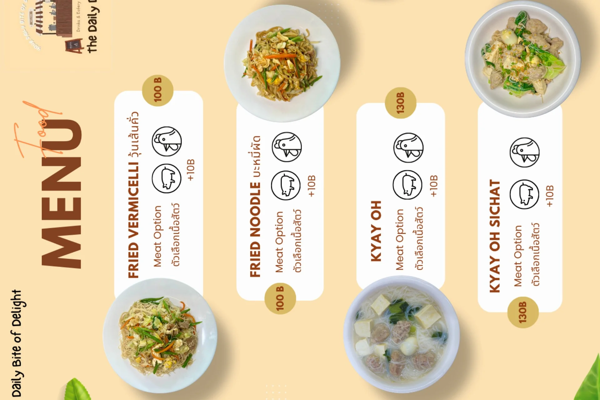 <p>The Daily Dish မှ Menu များကို MyanLife Coupon ဖြင့် 10% Discount ရယူနိုင်ပါသည်။</p>