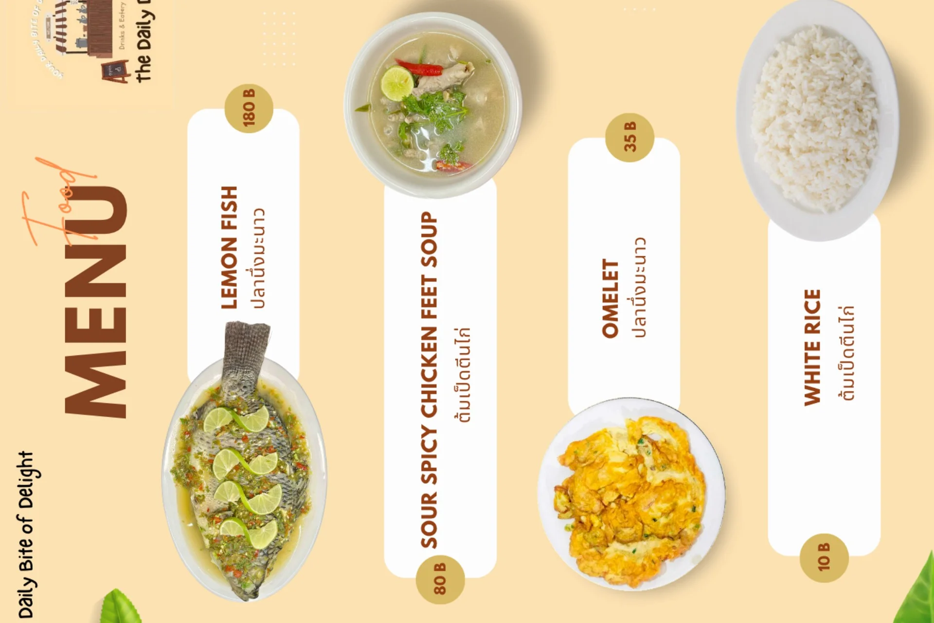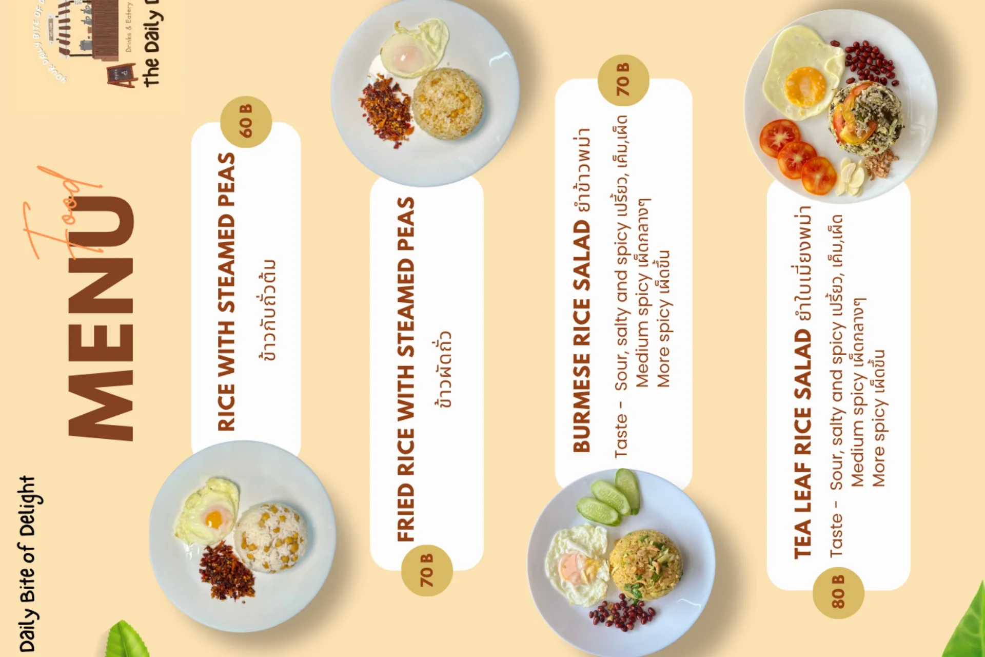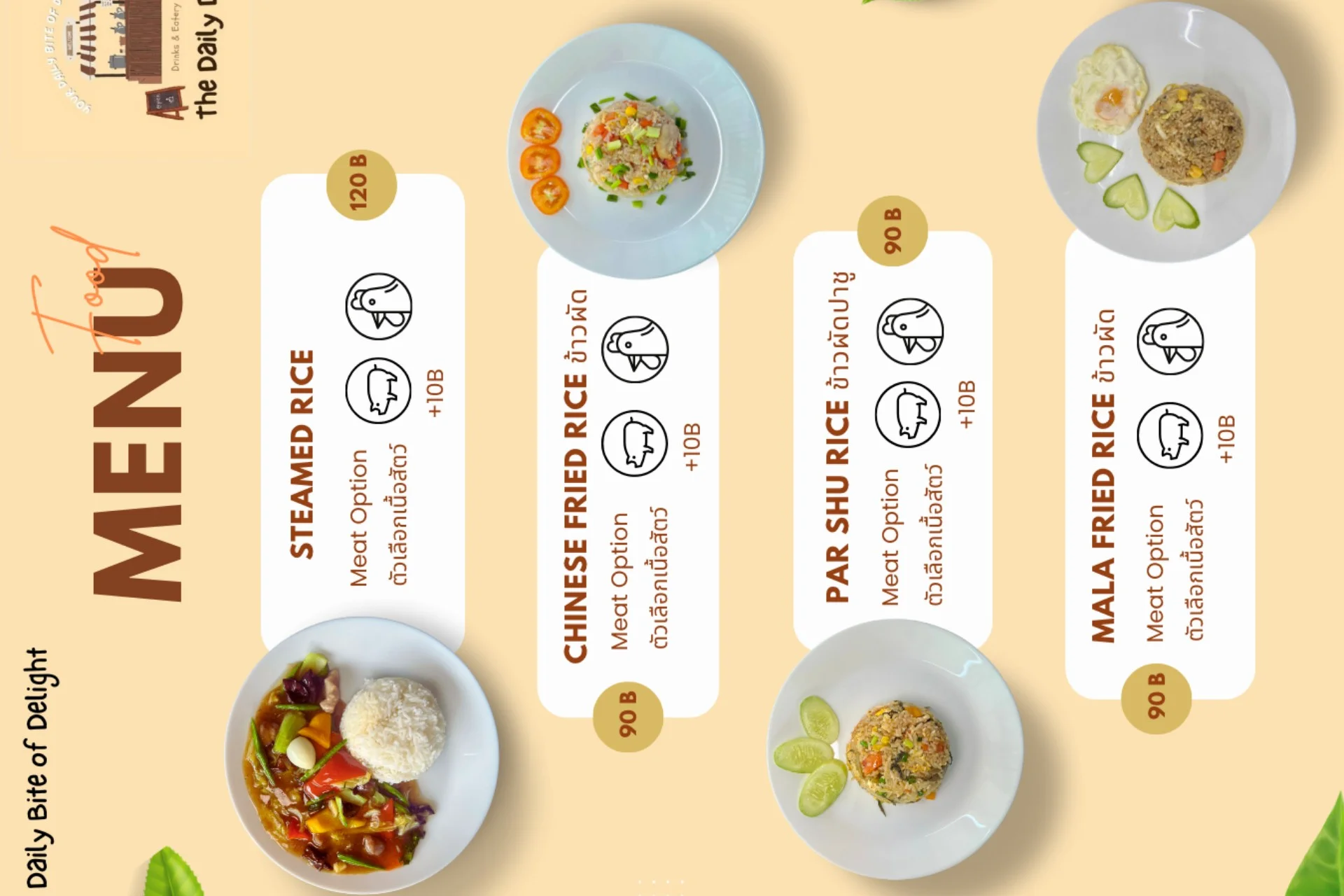 <p>The Daily Dish မှ Menu များကို MyanLife Coupon ဖြင့် 10% Discount ရယူနိုင်ပါသည်။</p>